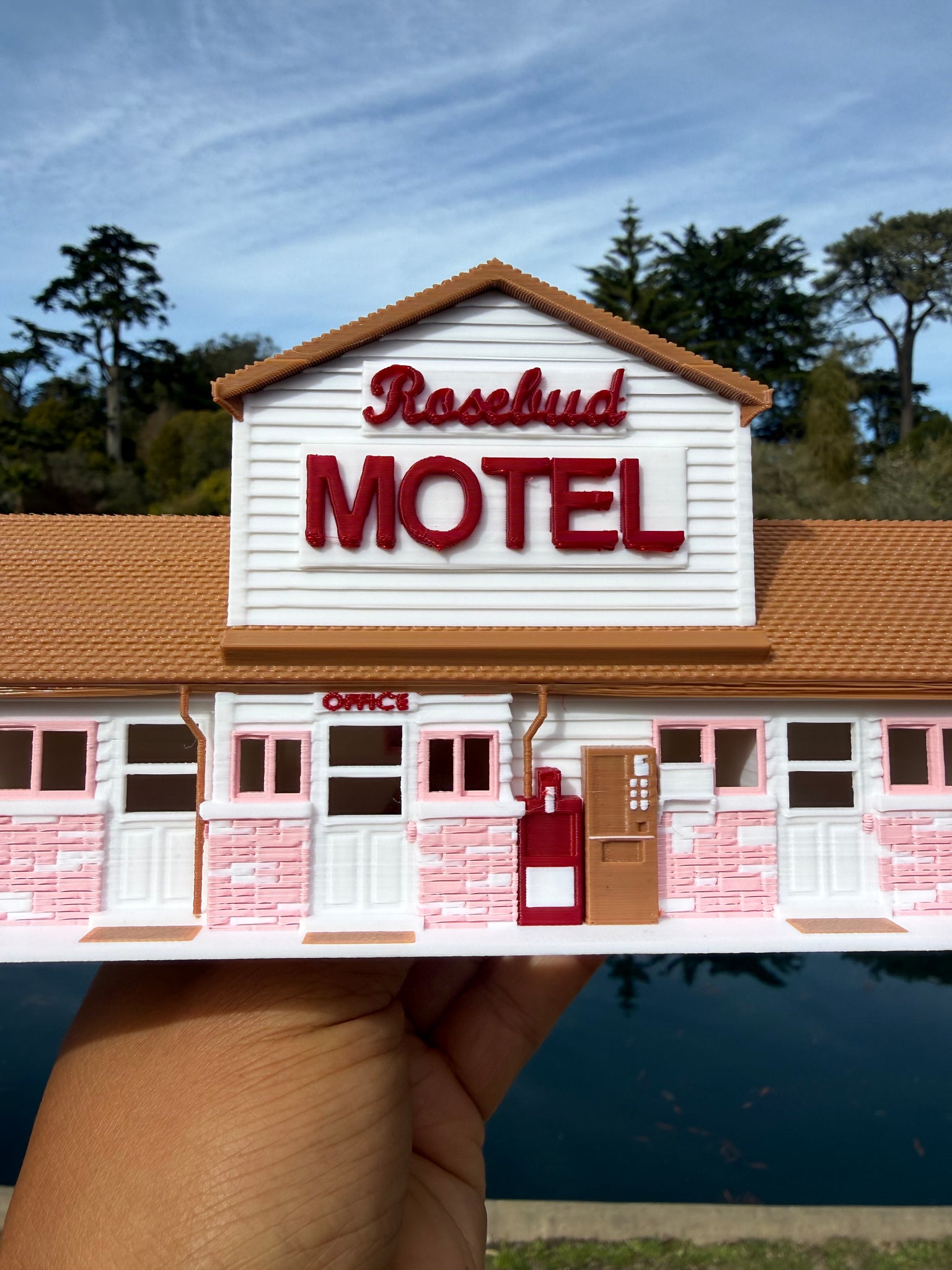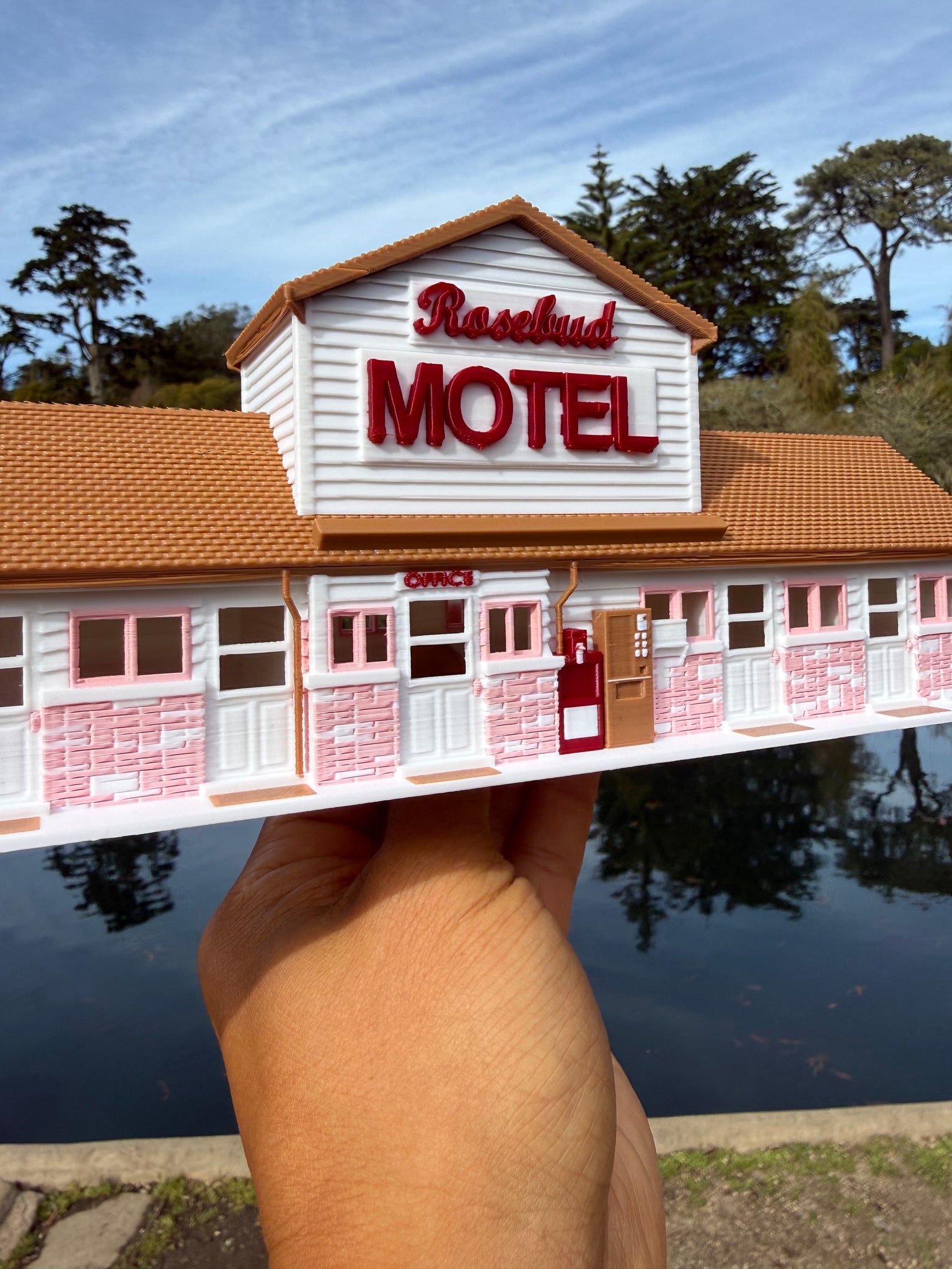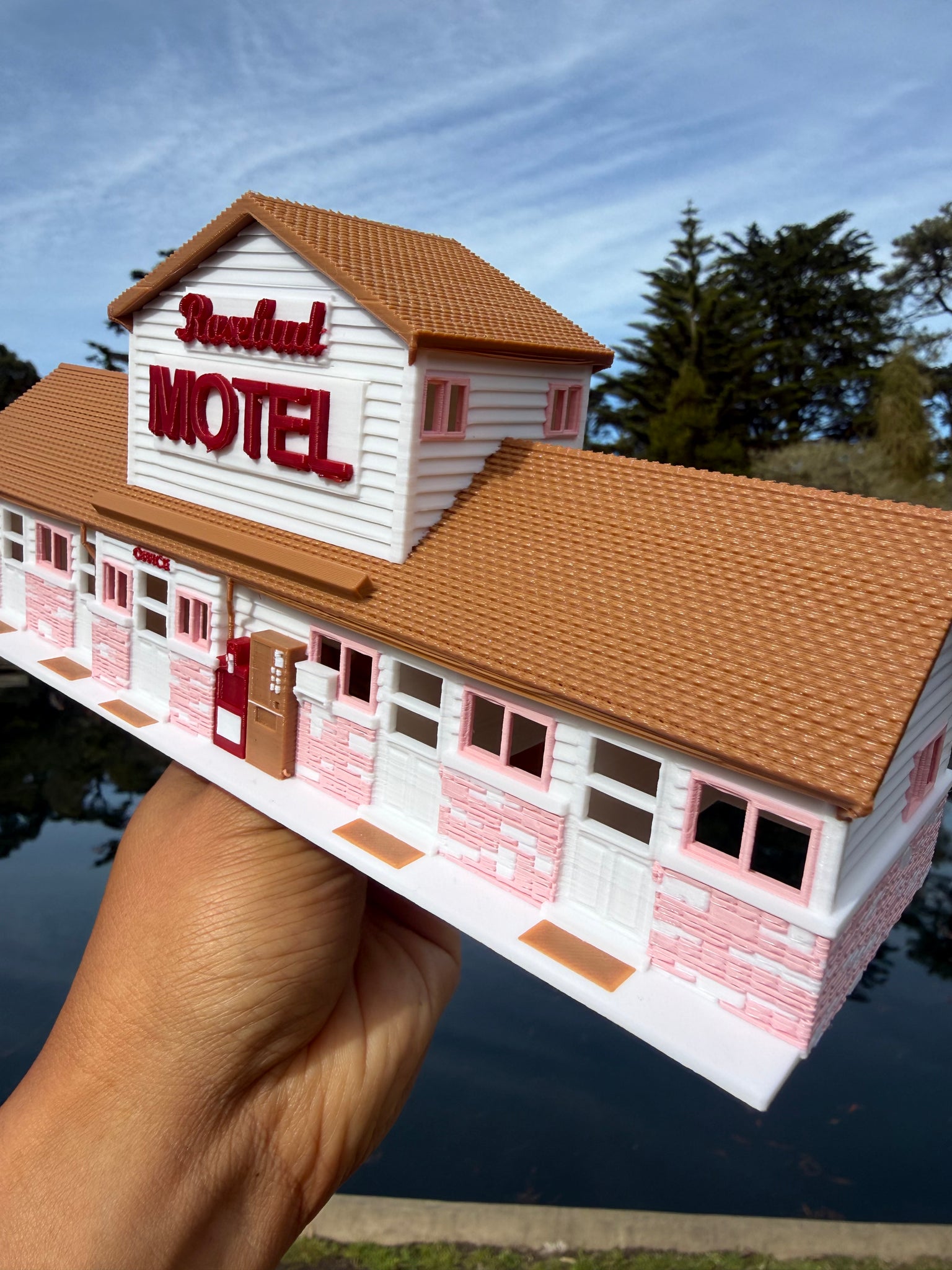 Fold in the cheese, then fold in this miniature motel into your collection! Gold Rush Bay Ready Built miniature Color HO-Scale Rosebud Motel Building. Measures 9 inch wide by 3 inches deep by 4 inches tall. Candle flowers and card not included.