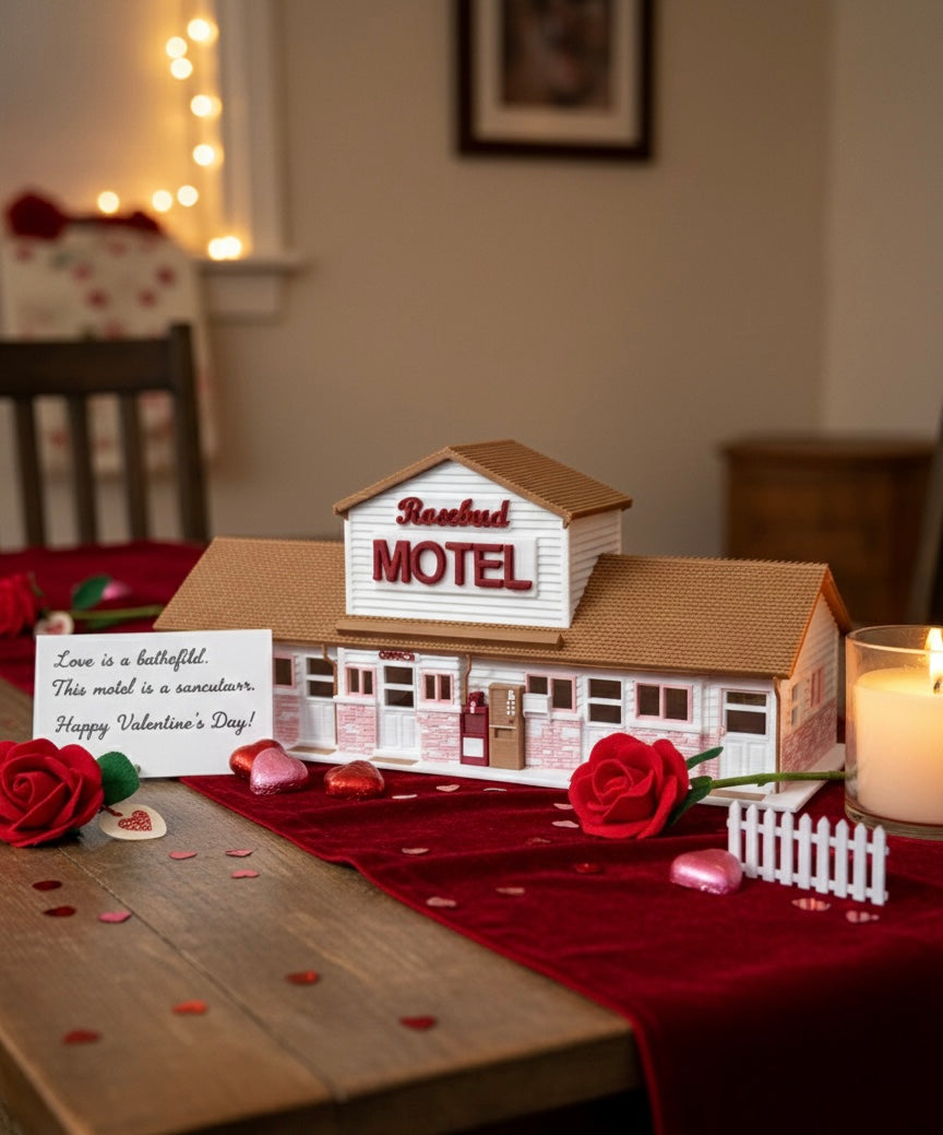 The Rosebud Motel (filmed at the real-life Hockley Valley Motel in Orangeville, Ontario) is a quintessential example of mid-century roadside Americana, specifically a 1950s–60s "Motor Court" style building. Its design focuses on functionality and "car culture," meant to be easily identifiable to drivers passing by on a rural highway.