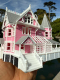 Small COLOR N-Scale Miniature Opening “The Pink Palace” Victorian House (1:150 Scale) with HINGE